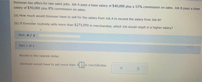 Solved Donovan Has Offers For Two Sales Jobs Job A Pays A Chegg Com